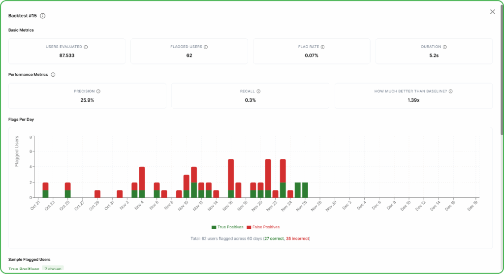 - A configurable rules engine with historical backtesting, allowing controls to be validated and refined before production deployment